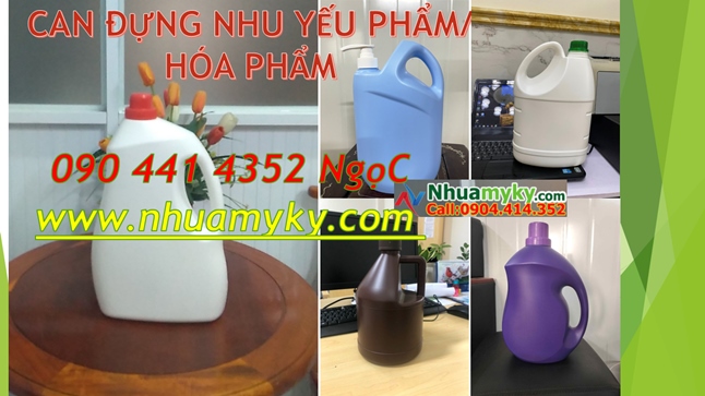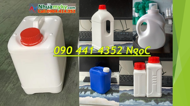 Bình nhựa 5 lít vuông, can 2 lít đựng chất làm dai, can nhựa 1 lít đựng chất nhờn