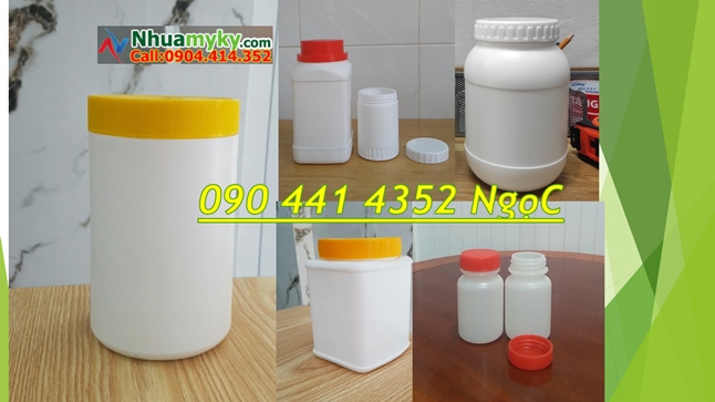 Hủ nhựa 100g đựng bột nghệ, hủ 250gr vàng, hủ nhựa 500gr đựng viên dầu cá