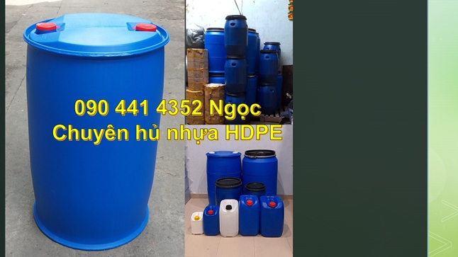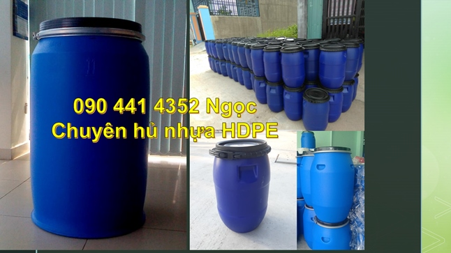 Thùng phi nhựa 220 lít nắp kín- Đựng chất lỏng: dung môi, xăng, dầu, nhớt, mật ong, nước đường, nhựa đường